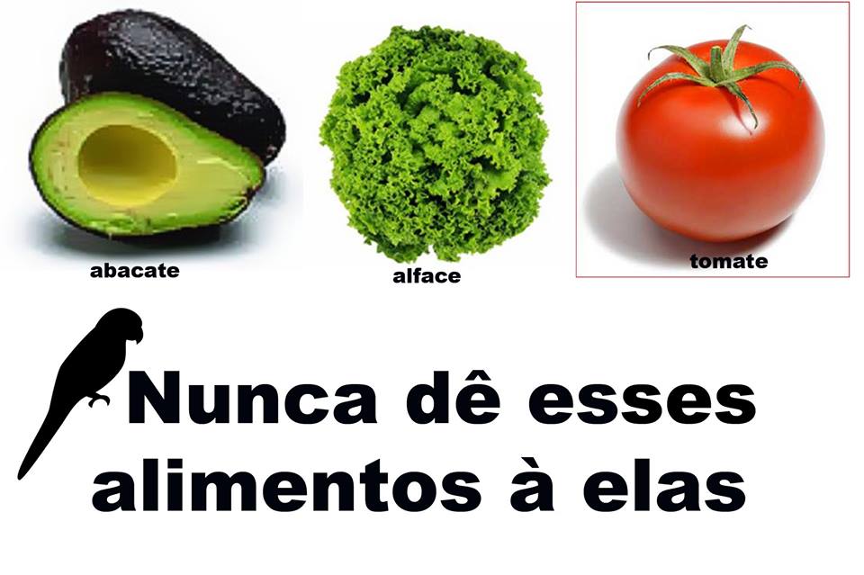 Estes alimentos abaixo não podem ser oferecidos por serem tóxicos ou por não serem adequados para o organismo das aves.