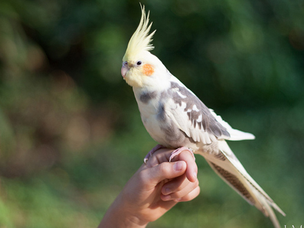 # 2 - Dar o dedo/mão para sua calopsita subir: É um exercício diário, dê a mão para sua calopsita subir, tente demonstrar afeição, converse com ela.